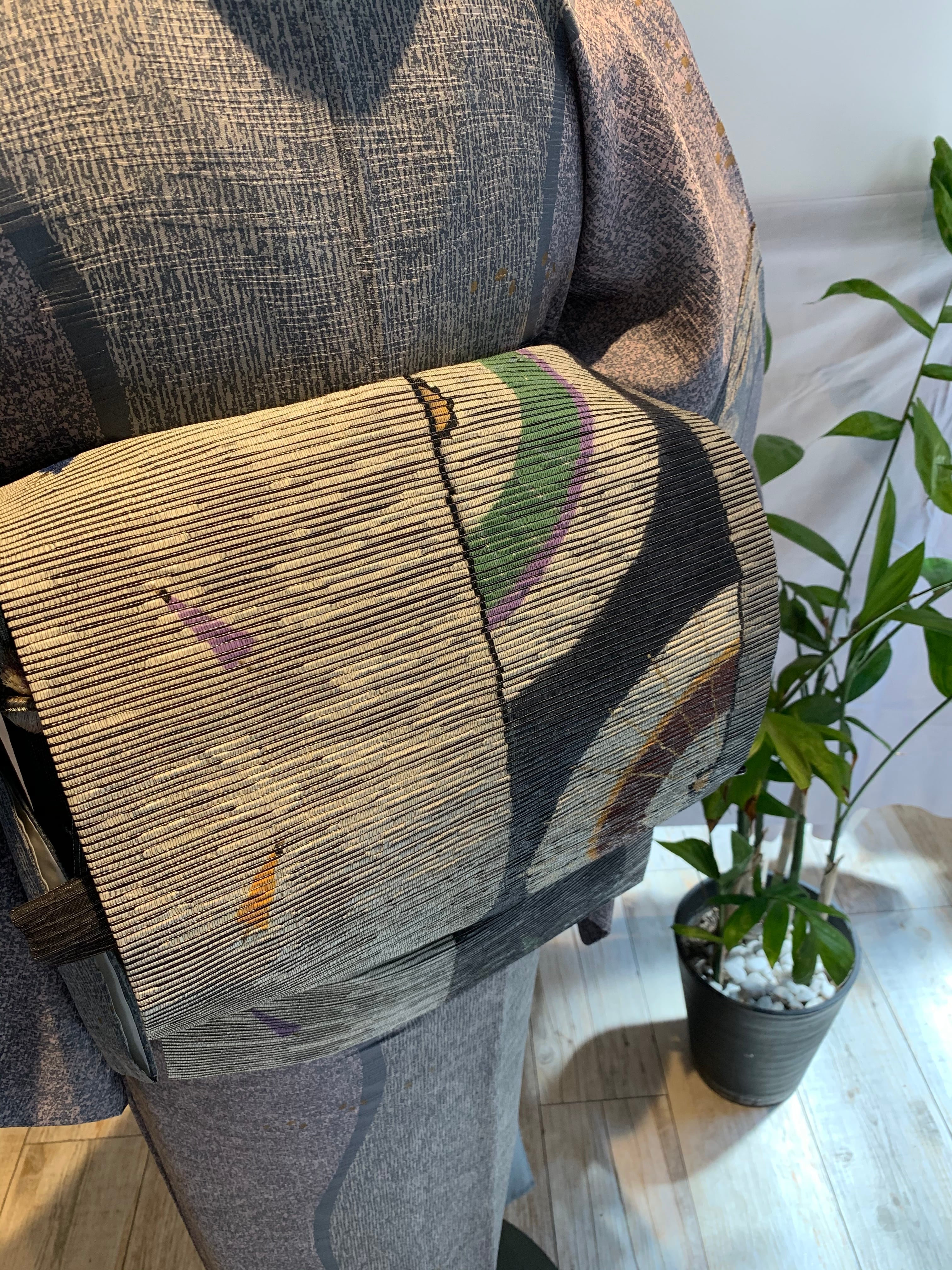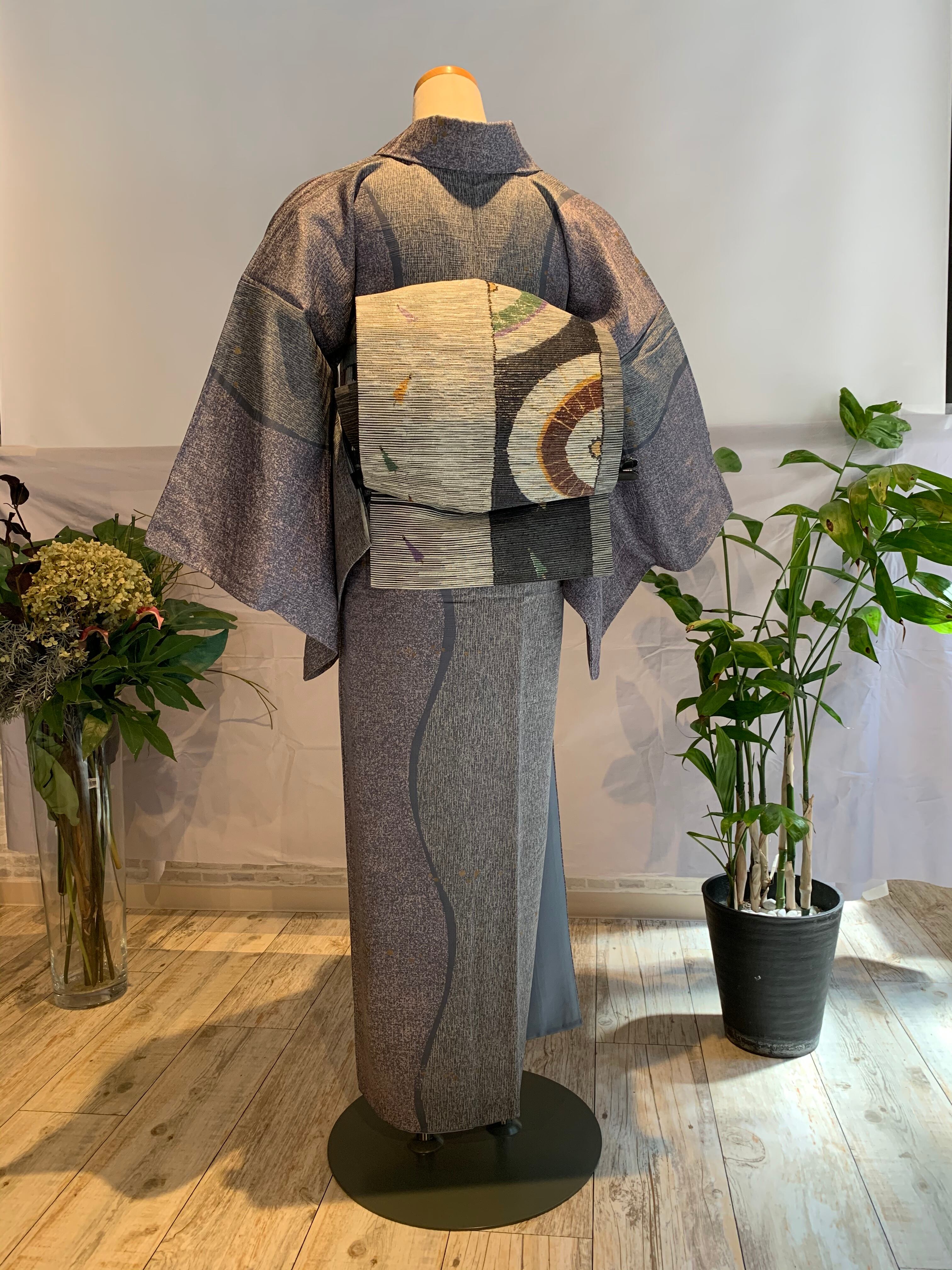 スッキリ着こなしていただければと、同色系の紙布の帯を合わせました。帯は別売です