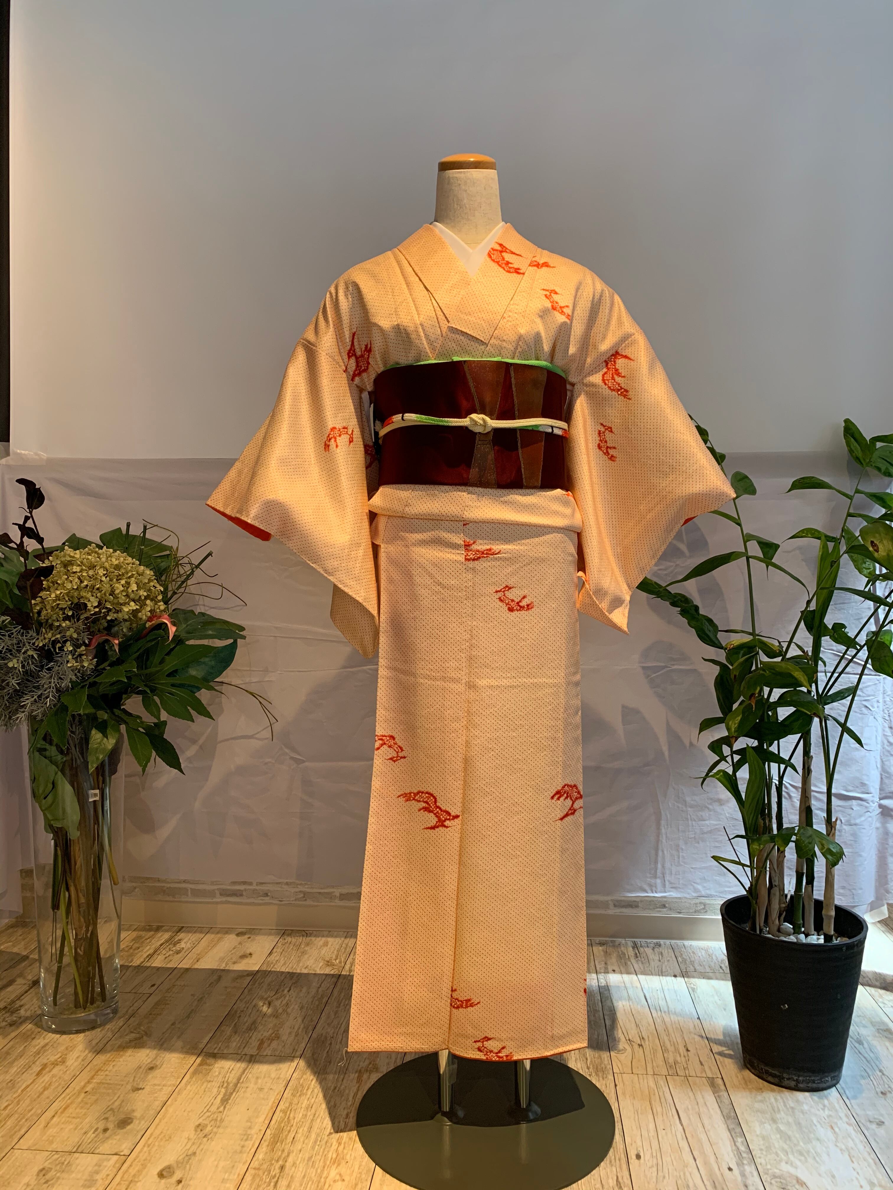 オレンジ色の絞り柄。同じ生地で作ったバッグもあります