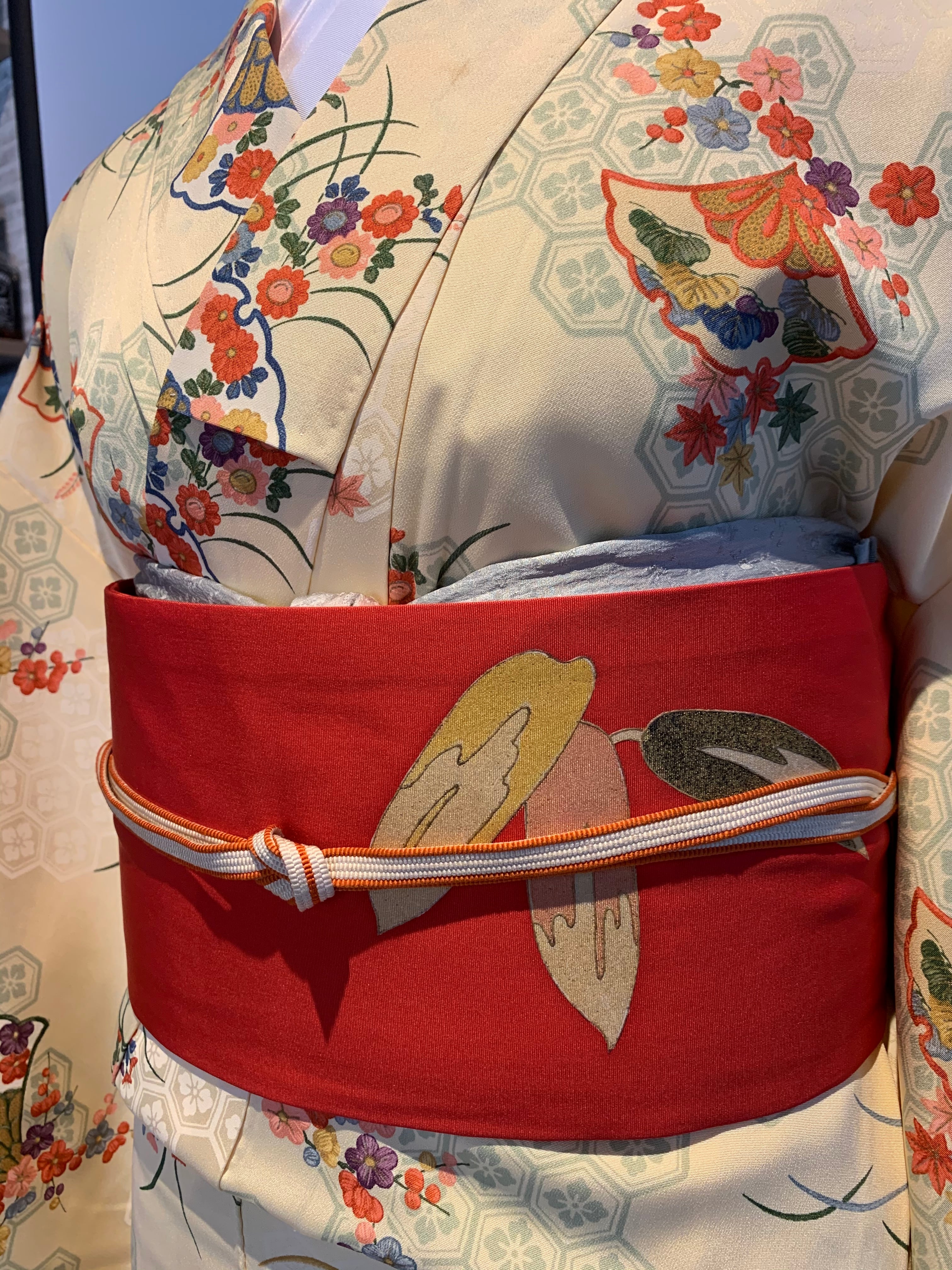 参考商品:羽織206(¥6000)、帯913赤笹の葉(¥4800)