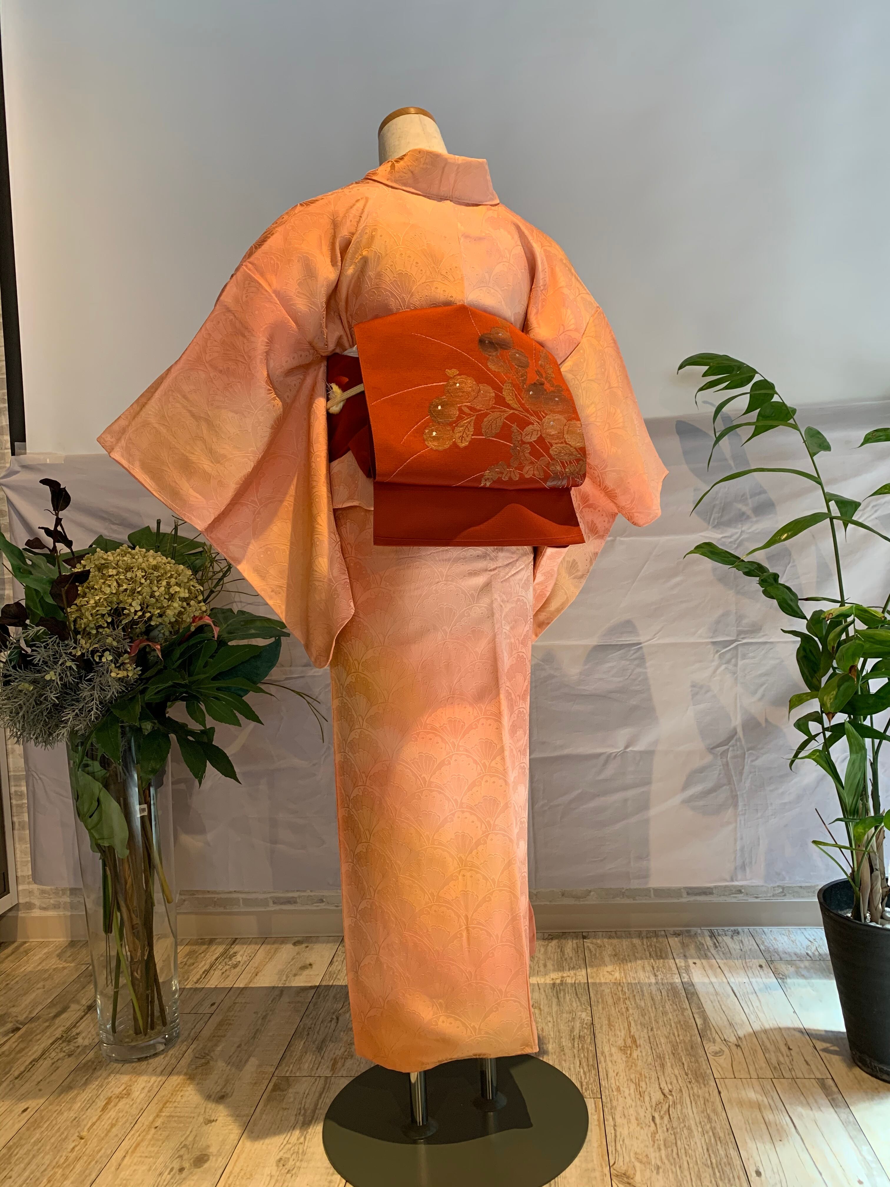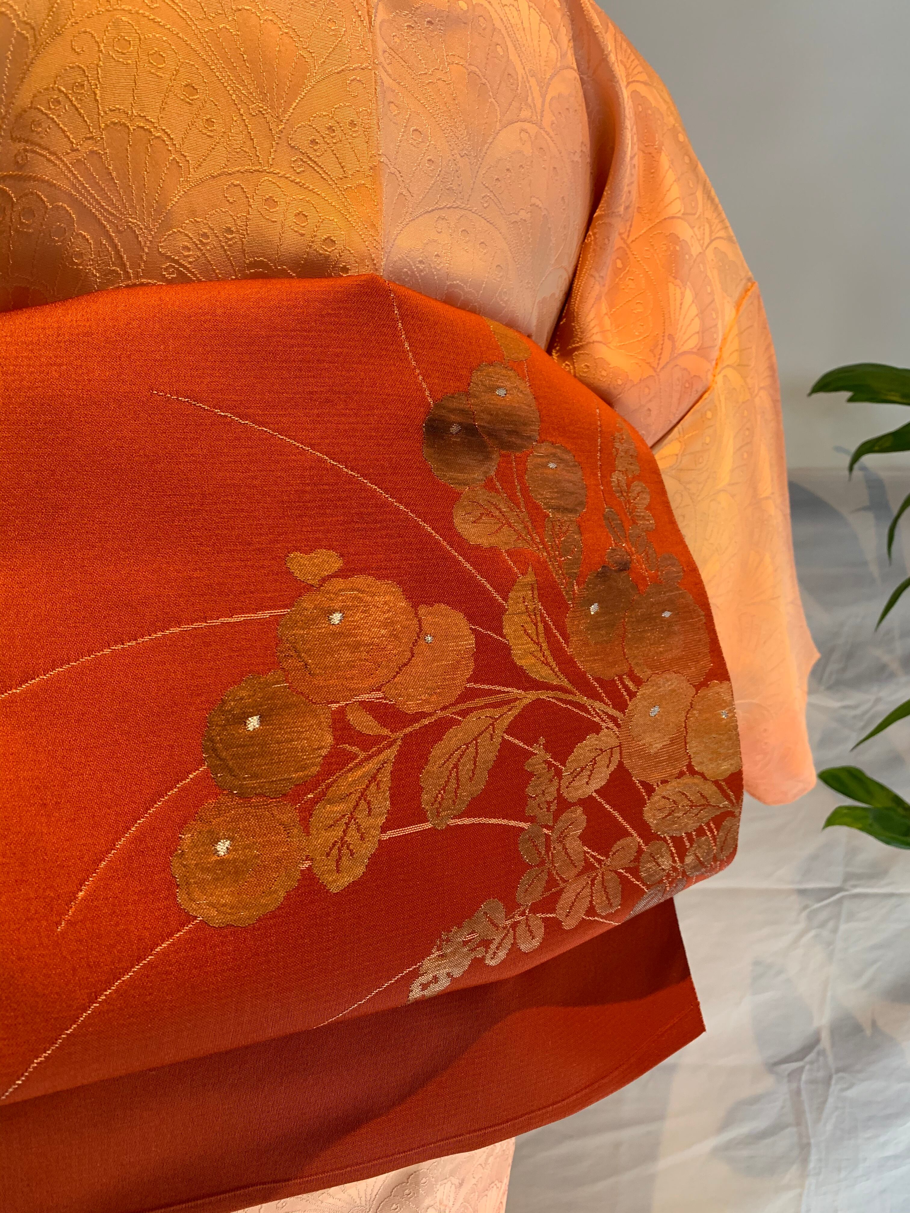 お柄は秋草に万寿菊なので、秋のお単衣から袷までお使いください。