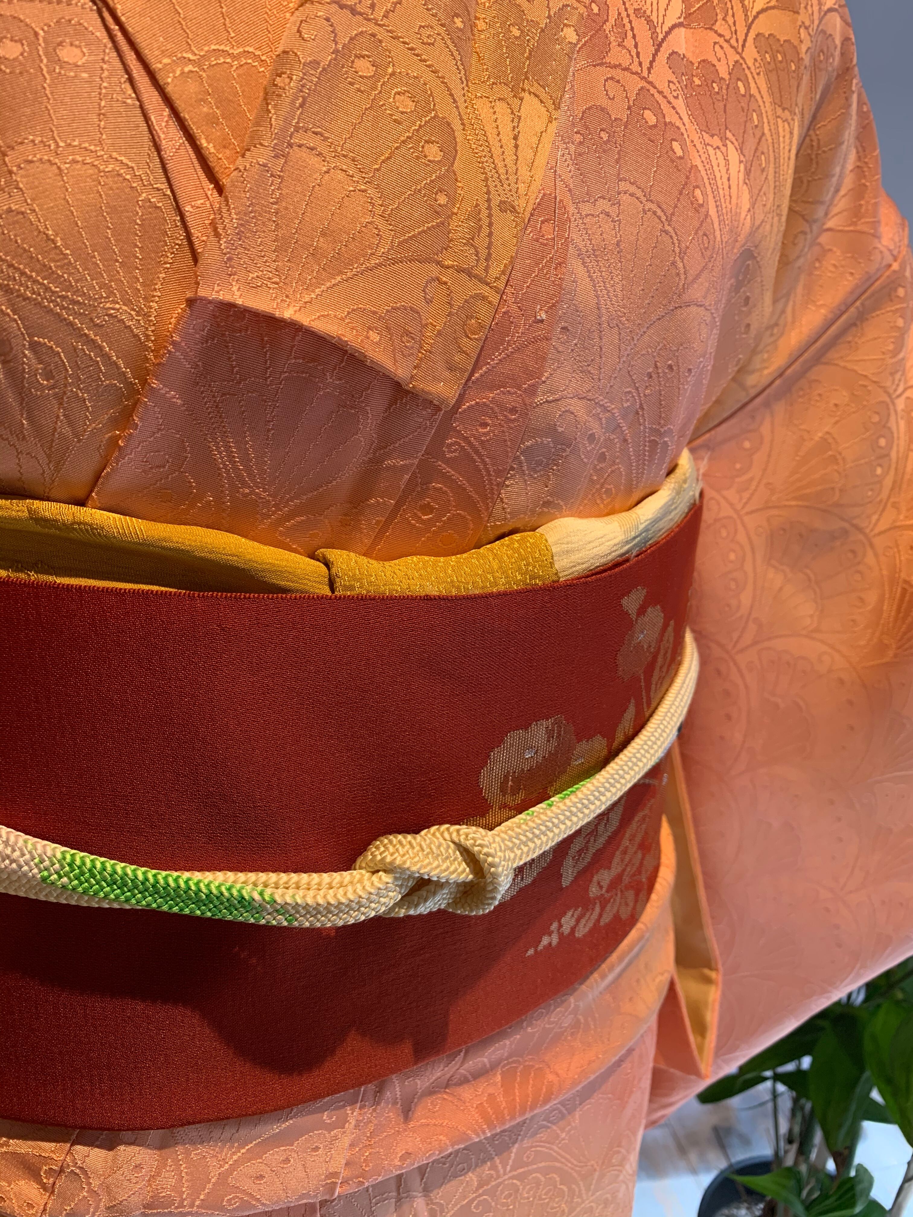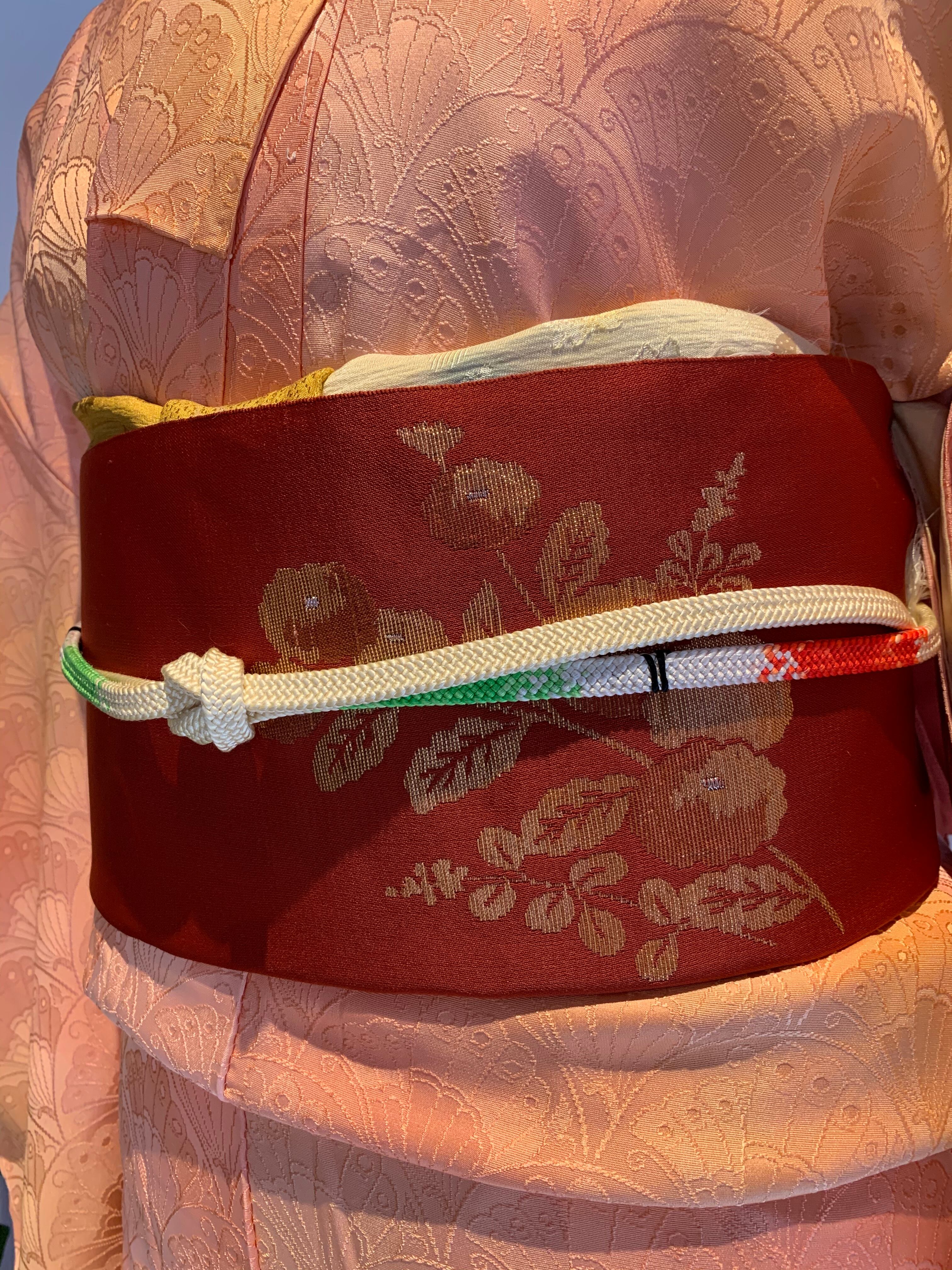 こちらはお茶会やお出かけにぴったりの名古屋帯です。小紋や紬だけでなく、色無地、付け下げまでお使いいただけます。